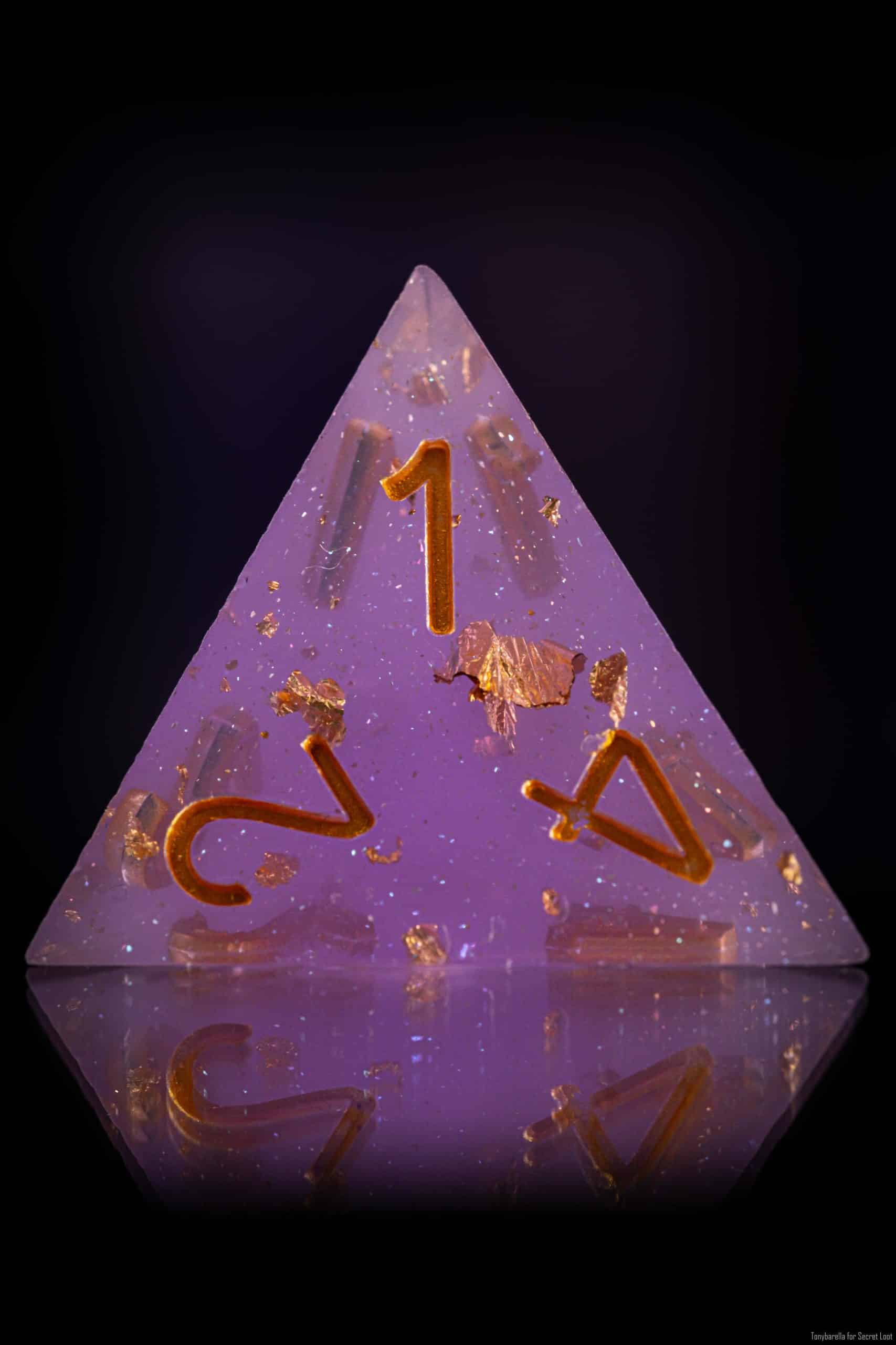 Nel set sono inclusi D4, D6, D8, D10, D%, D12 e D20. Sono offerti in un elegante portadadi decorato in metallo.