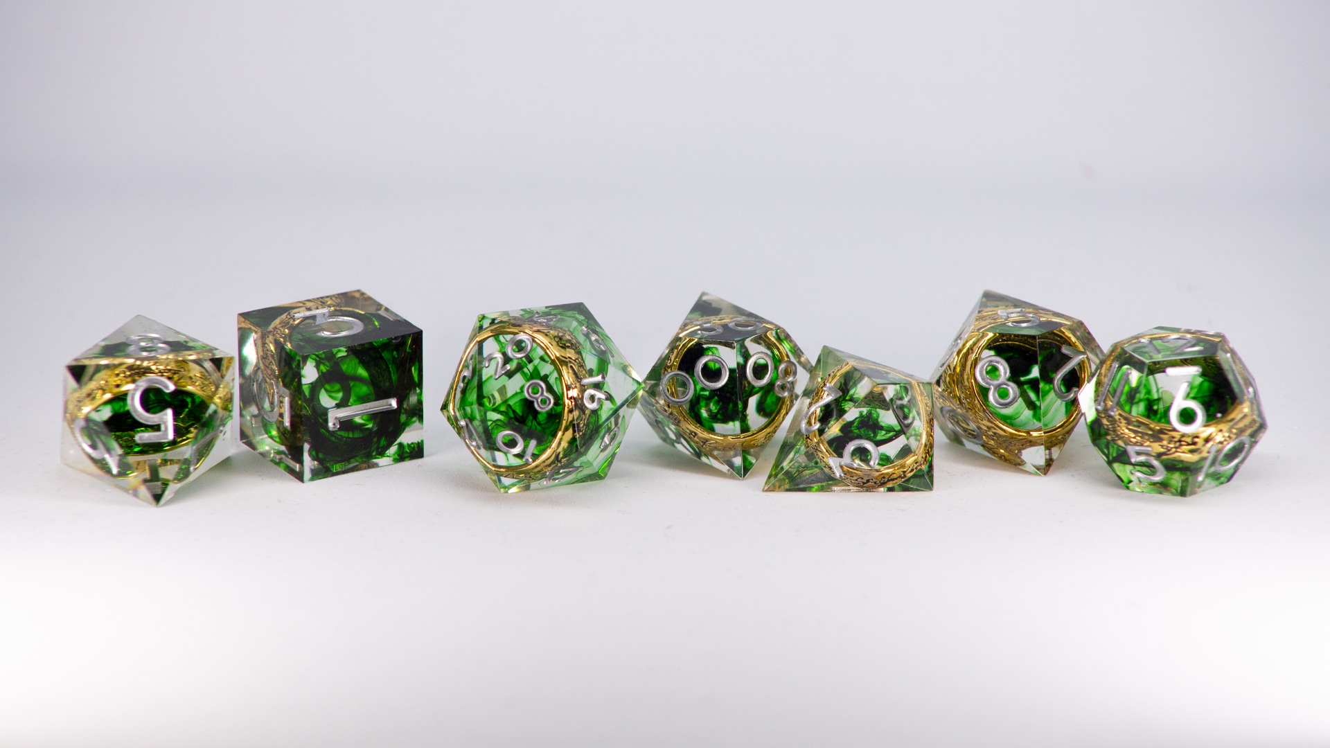 Set di dadi Sharp di resina Dell’Unico Anello Verde
